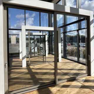 Lift & Slide doors feature a special mechanism that lifts the panel off its track for effortless sliding. They combine large glass surfaces with smooth operation and superior sealing.