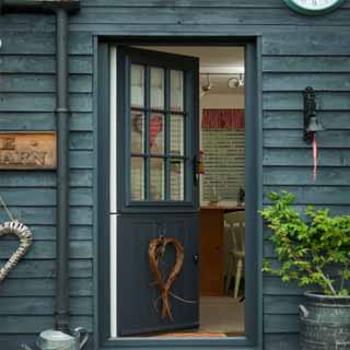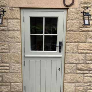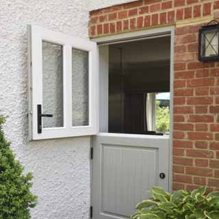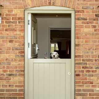 Stable doors are split horizontally, allowing the top and bottom halves to open independently. They are practical, charming, and versatile, popular for cottages and kitchens.